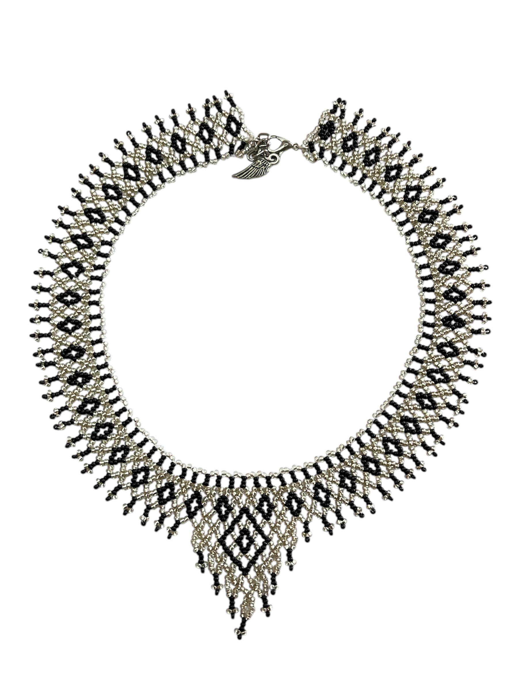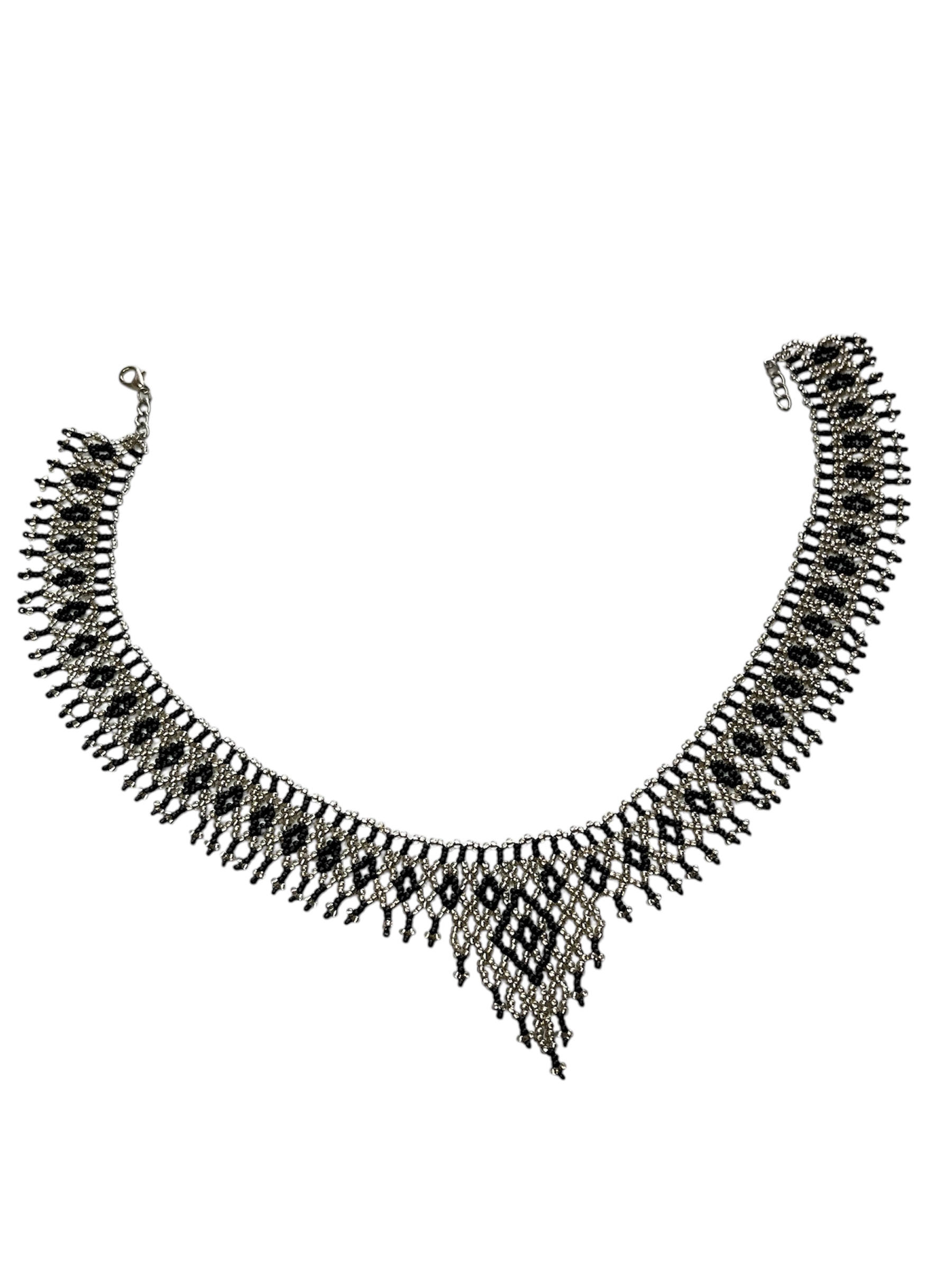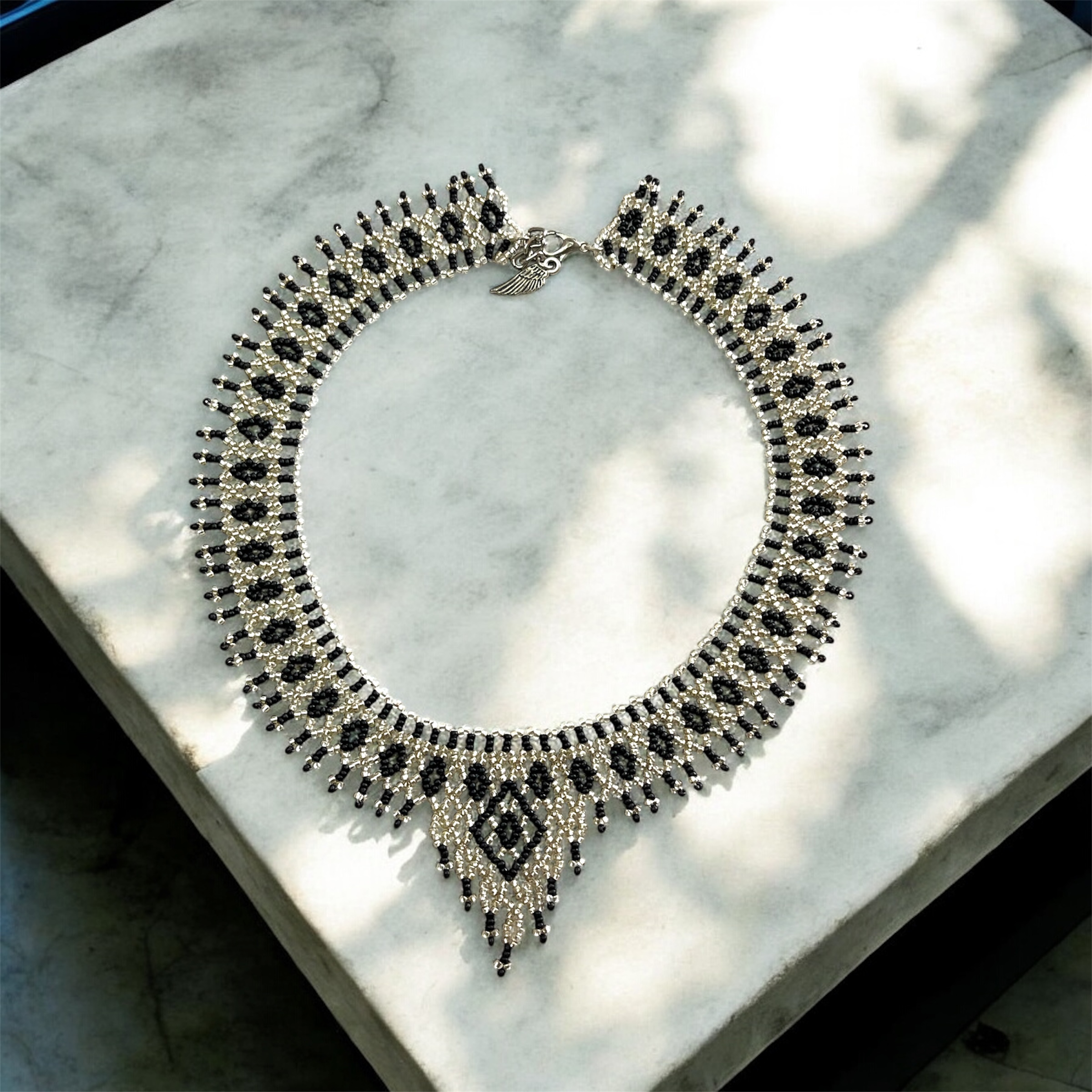 Mısır kraliçesi Kleopatra’nın ihtişamından ilham alan bu kolye, gösterişli desenleri ve zarif örgü yapısıyla dikkat çeker. Özel tasarımı sayesinde boynunuzda adeta bir kraliyet ışıltısı yaratan parça, siyah ve metalik tonların birleşimiyle klasik bir şıklık sunar. Ayarlanabilir yapısı sayesinde her giyim tarzına kolayca uyum sağlayarak hem günlük kullanıma hem de özel davetlere mükemmel bir dokunuş katar. Kraliçelere yaraşır bir stil arayanlar için ideal bir seçim!